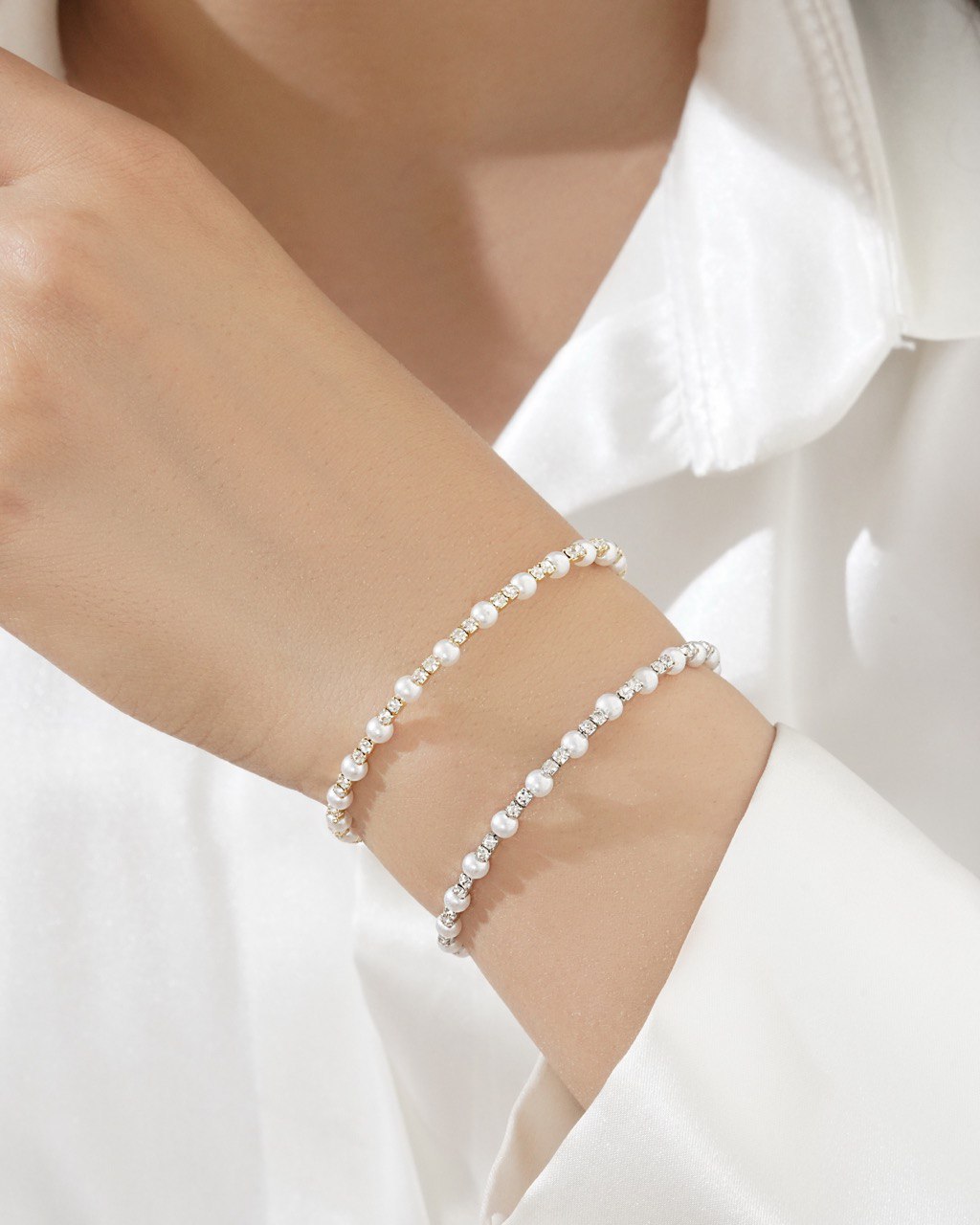 بنگل دوقلوی Grace ترکیبی از درخشش کریستال و لطافت مروارید است؛ طراحی ظریف و زنانه‌ای که استایل کلاسیک را با درخشش مدرن همراه می‌کند.