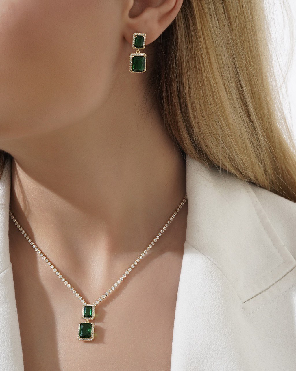 ست زمردا با طراحی مینیمال و سنگ زمرد سبز براق، تلفیقی از ظرافت و وقار است. این نیمست زنانه لوکس با آبکاری طلای ۱۸ عیار و نگینکاری ظریف، انتخابی ایدهآل برای استایلهای شیک و مجالس خاص است. درخشش سبز زمرد، زیبایی چهره را چند برابر میکند و جلوهای ماندگار از استایل زنانه مدرن میسازد