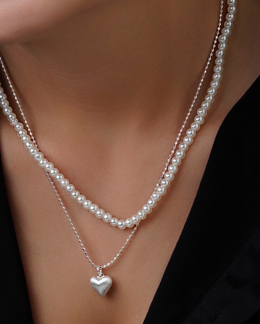گردنبند مروارید و قلب دو لاین با زنجیر اضافه