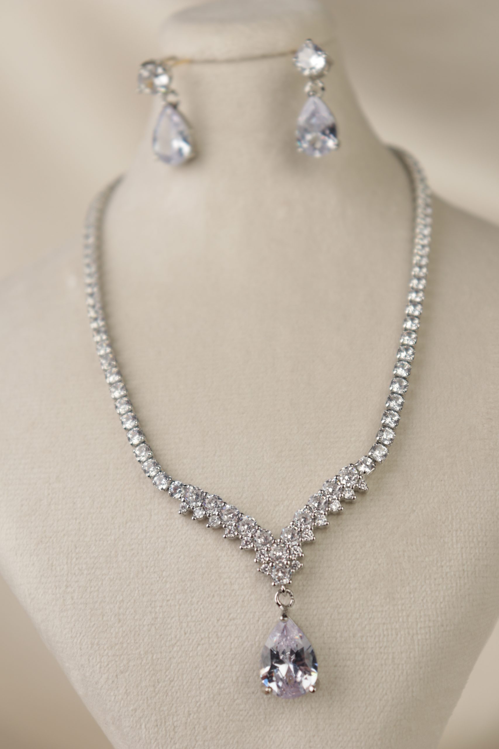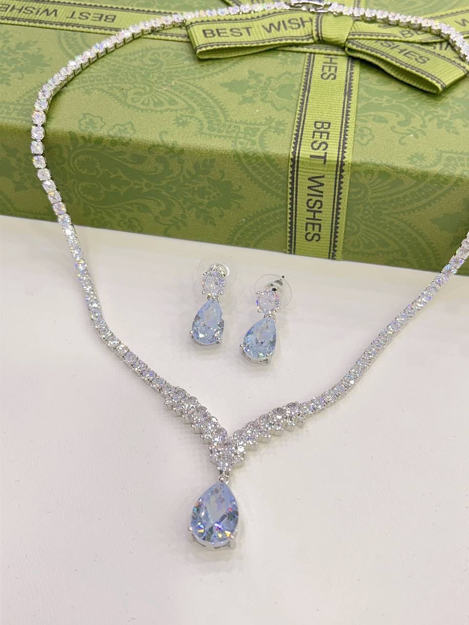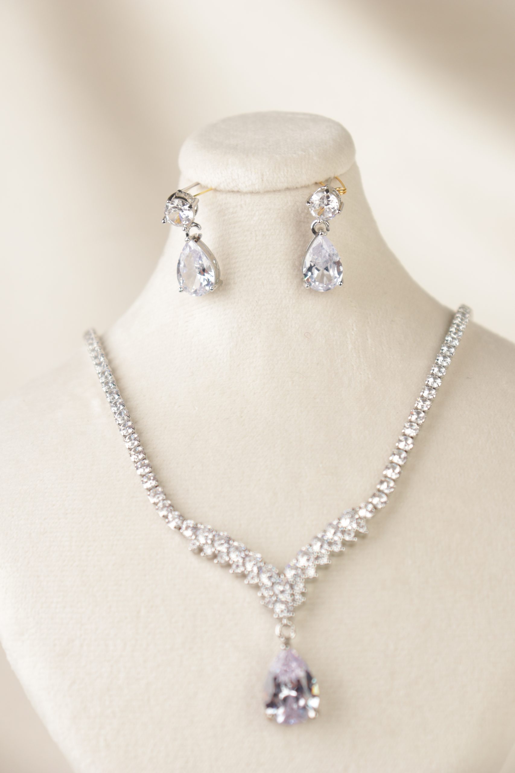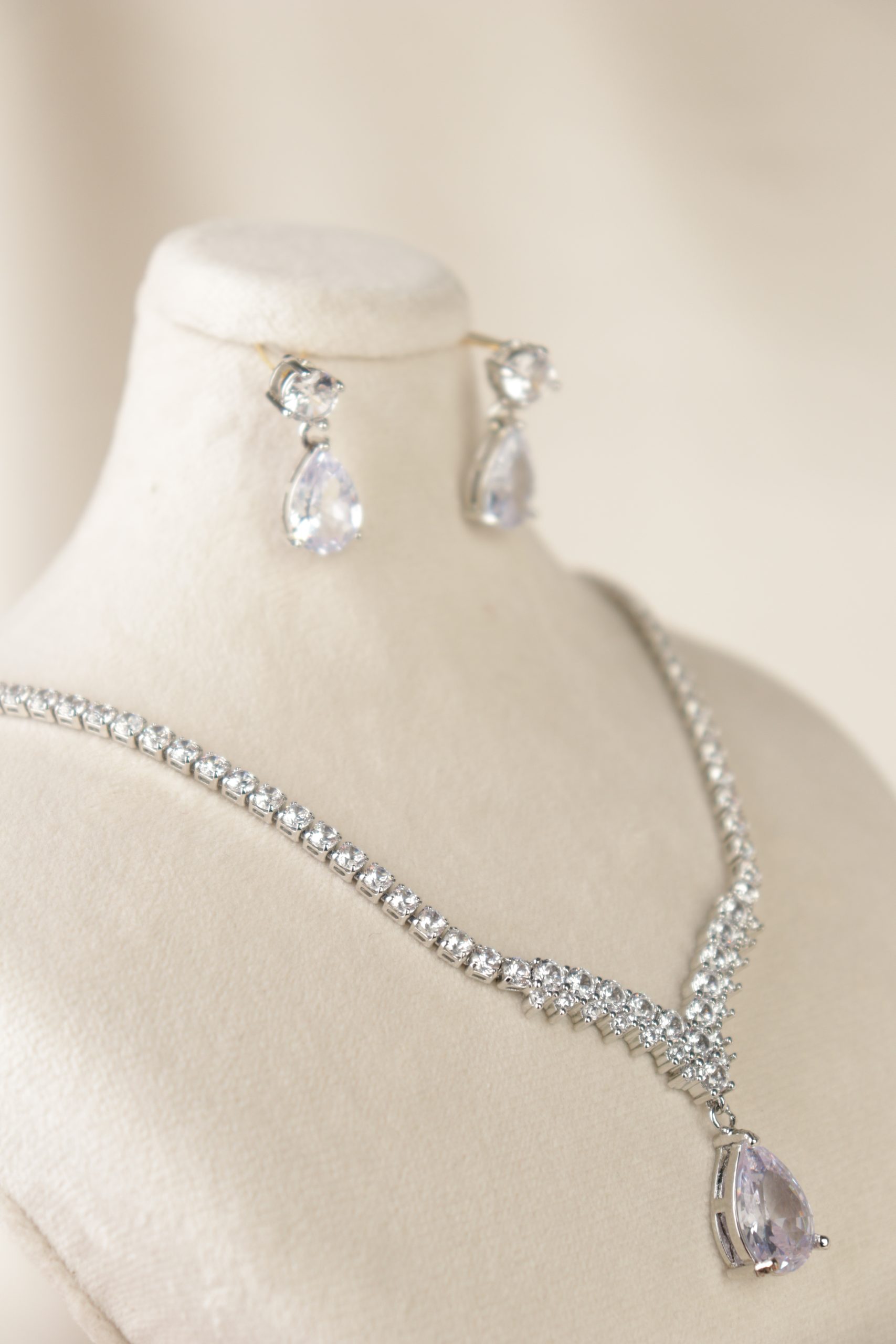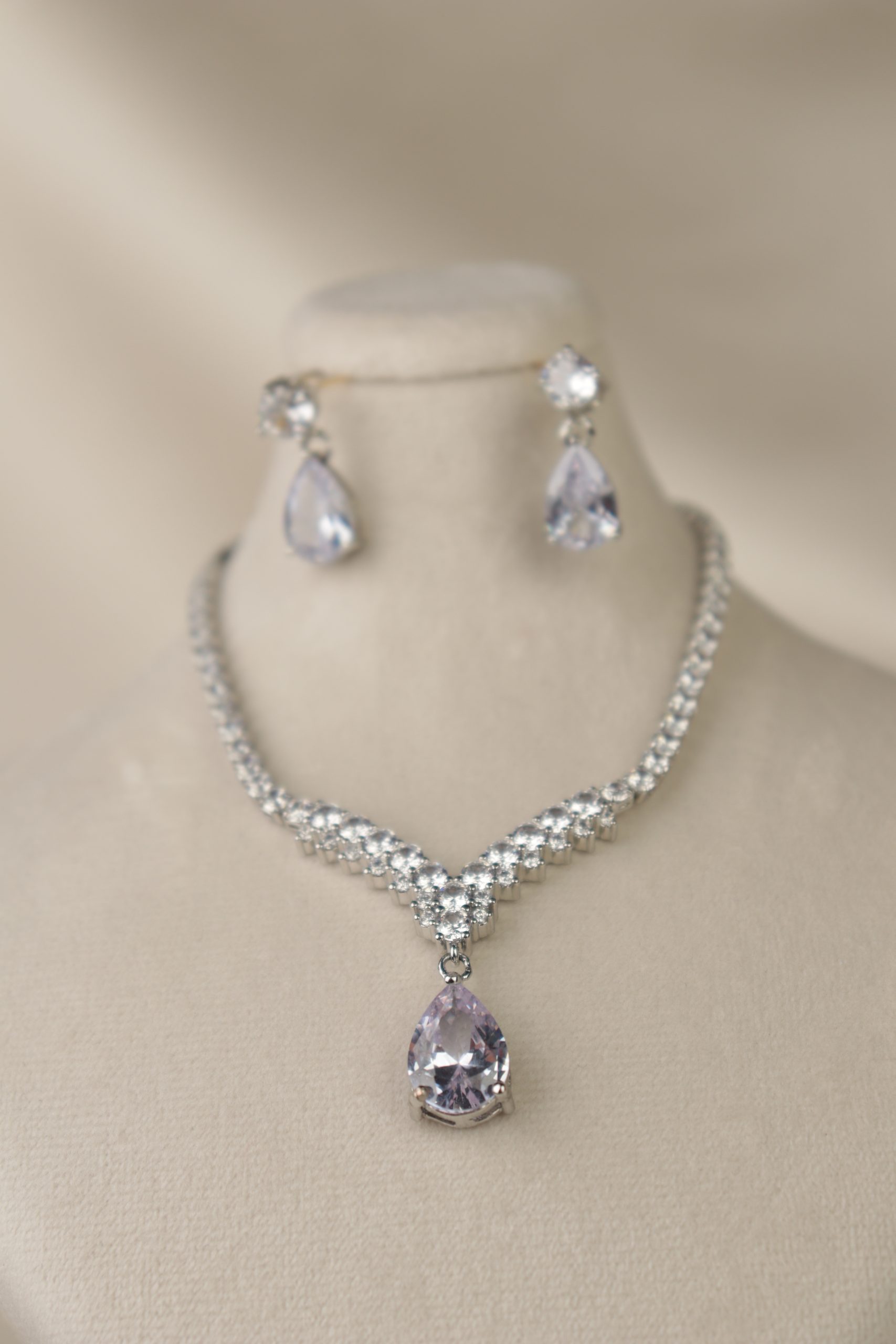 نیم ست ۳ تکه آمتیس با نگین های زیرکونیا براق آبکاری نقره و رنگ ثابت