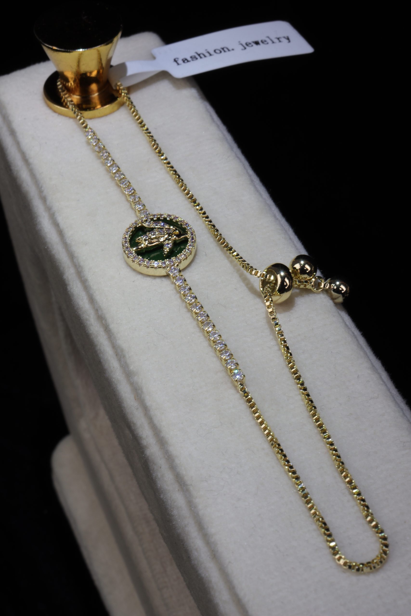 دستبند Green Royale Bamboo با الهام از فرم طبیعی بامبو طراحی شده؛ فرمی که نماد رشد، سلامتی، پایداری و خوش‌شانسی است. مدال سبز وسط دستبند، با قاب طلایی و نگین‌های ریز اطرافش، ظاهری لوکس و خاص می‌سازد و همین باعث می‌شود این مدل روی مچ مثل یک قطعه جواهر واقعی بدرخشد.